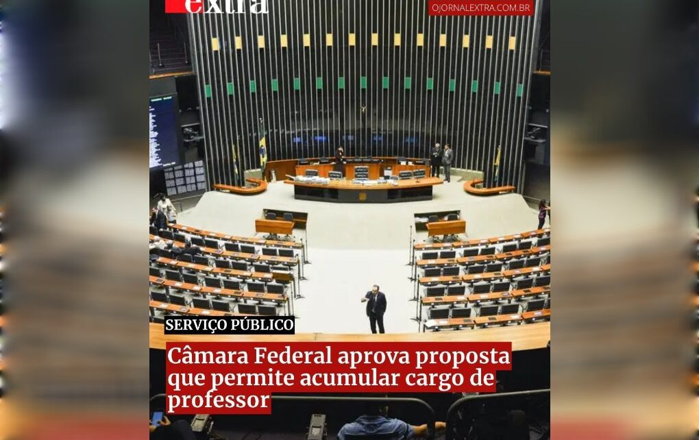 A Câmara dos Deputados aprovou em dois turnos a Proposta de Emenda à Constituição (PEC) 169/19, que autoriza a acumulação remunerada, no serviço público, de um cargo de professor com outro de qualquer natureza. O texto segue para o Senado.